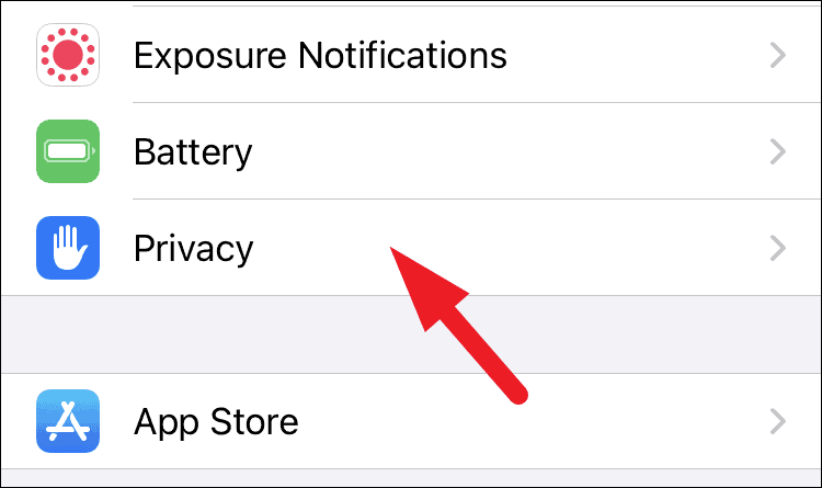 Next, scroll down and tap on the ‘Privacy’ tab’ present on your screen.