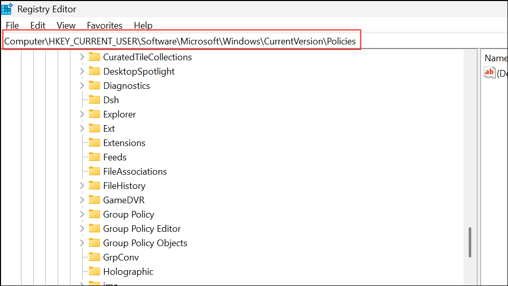 HKEY_CURRENT_USER\Software\Microsoft\Windows\CurrentVersion\Policies