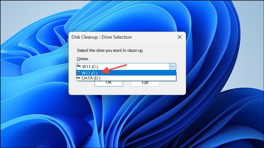 Step 2: Select the drive you want to clean (usually C:), then wait as the tool calculates how much space you can free up.