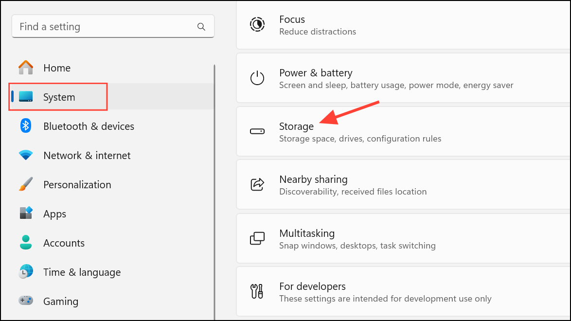 Step 1: Open Settings > System > Storage and enable Storage Sense. This feature automatically deletes temporary files and manages space based on your preferences.