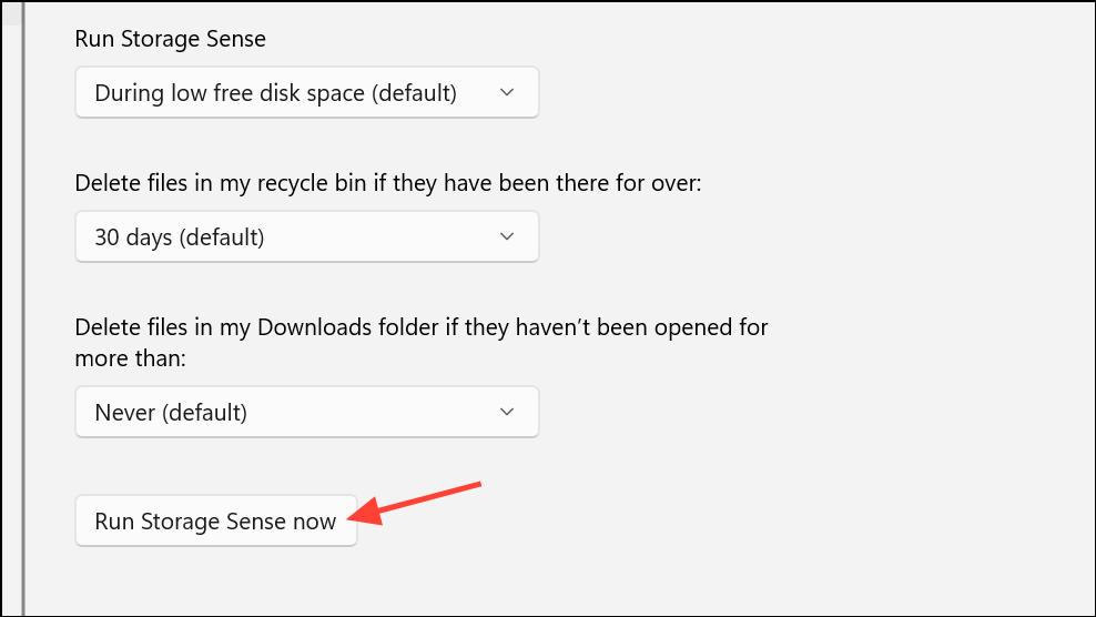 Step 3: You can also run Storage Sense immediately by selecting Run Storage Sense now in the configuration screen.