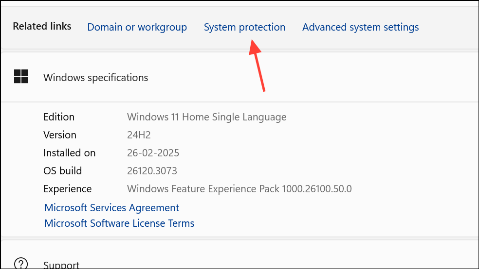 Settings > About > System protection.