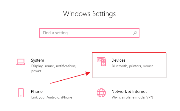 Step 2: In the Settings window, select Devices to manage device-related settings.