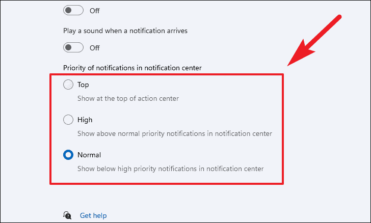 Priority of notifications in notification center, select the desired priority level for the app's notifications.