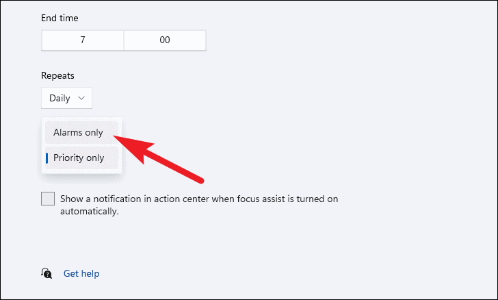Focus levelby choosing eitherPriority onlyorAlarms only.
