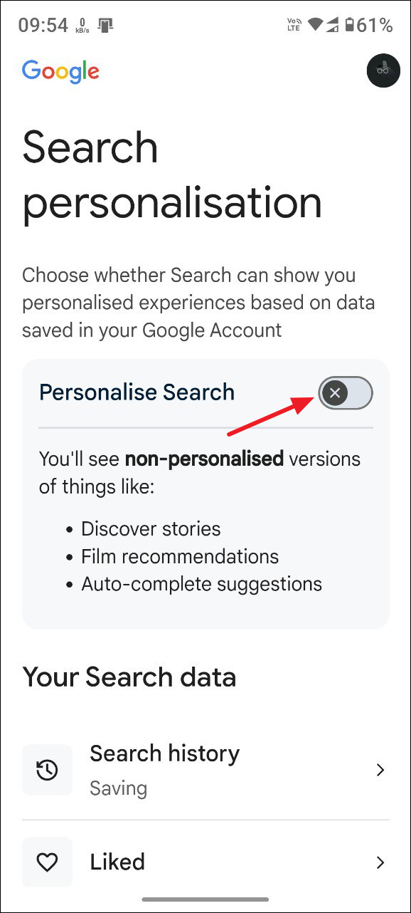 - Then tap on the 'Personalize search' toggle and turn it off. Now, your Google searches will no longer show personalized results. You can turn it back on again from here at any time.