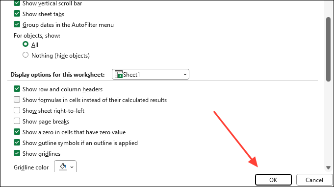 Step 5: Click 'OK' to apply the changes. The scroll bars should now appear, allowing you to navigate through the worksheet.