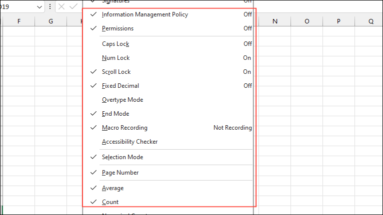 Step 2: If you don't see "Scroll Lock" in the status bar, you need to enable this indicator. Right-click anywhere on the status bar to open a contextual menu with various options.
