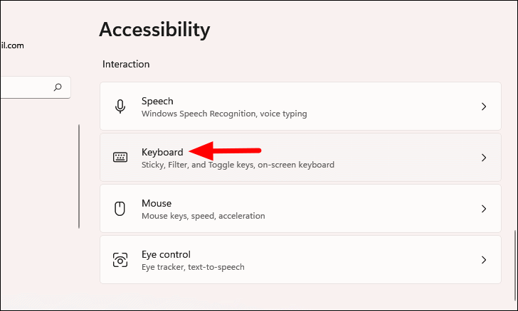 - Scroll down and click on "Keyboard" under the "Interaction" section.
