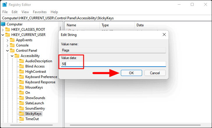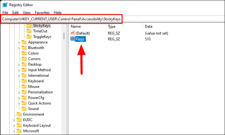 HKEY_CURRENT_USER\Control Panel\Accessibility\StickyKeys -
