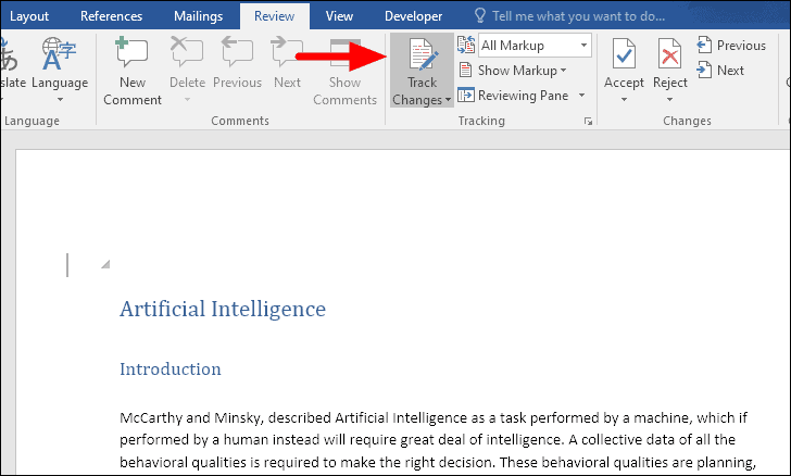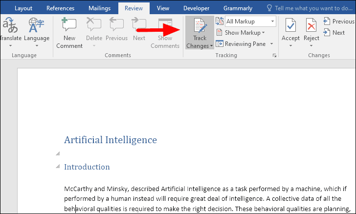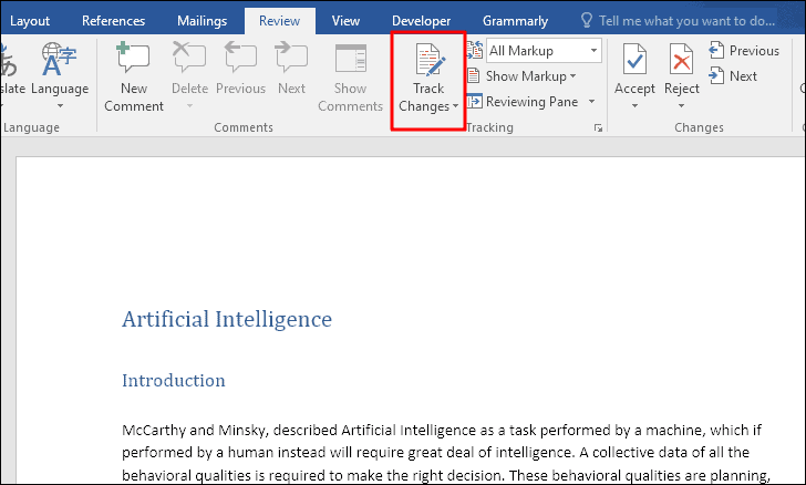 Step 3: Click on the upper part of the 'Track Changes' icon to turn off the feature.