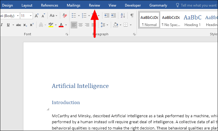 Using the Review tab