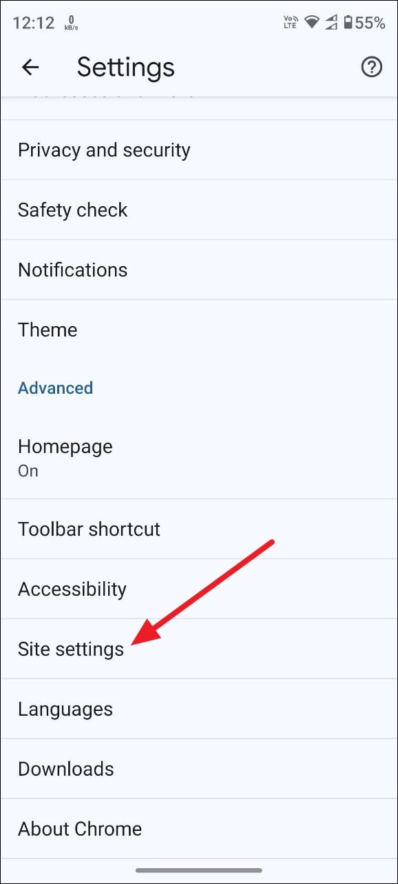 Step 3: In the 'Settings' menu, scroll down and tap on 'Site settings' to adjust site permissions.