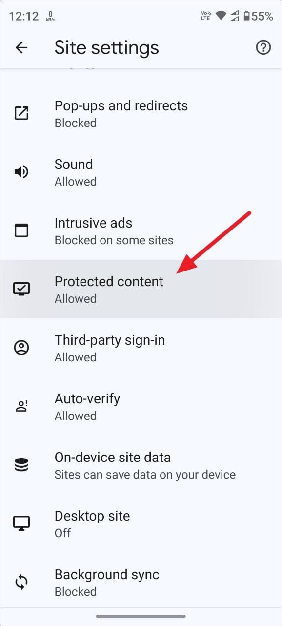 Step 4: Scroll down and tap on 'Protected content' under the 'Media' section to manage DRM settings.