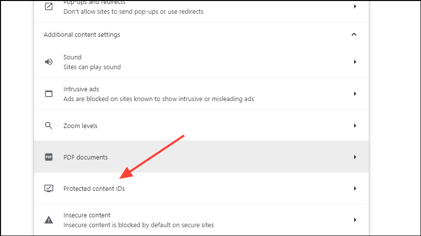 Step 6: Within the expanded section, select 'Protected Content IDs' to adjust settings related to protected content.