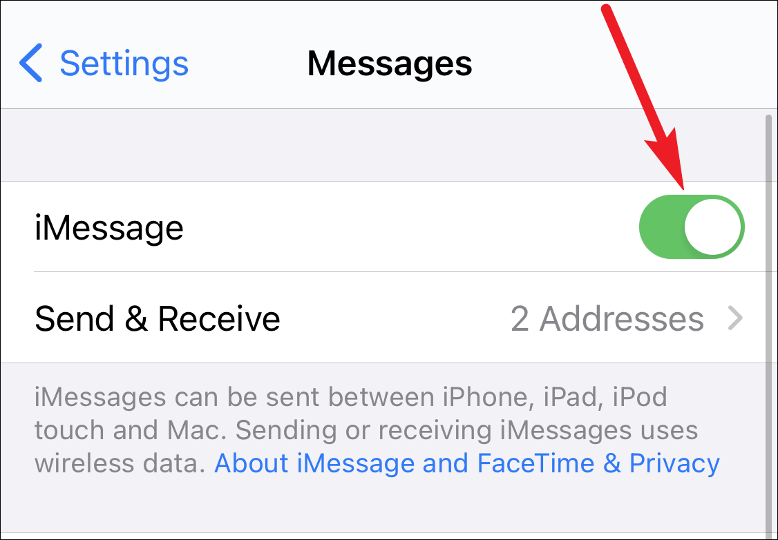 Step 3: In the Messages settings, locate the iMessage option at the top. If the toggle switch next to it is green, iMessage is already enabled. If not, tap the switch to turn it on.