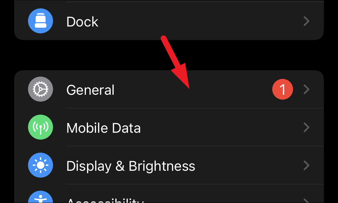Now, on the ‘Settings’ screen, scroll down a bit and tap on the ‘General’ tile to proceed.