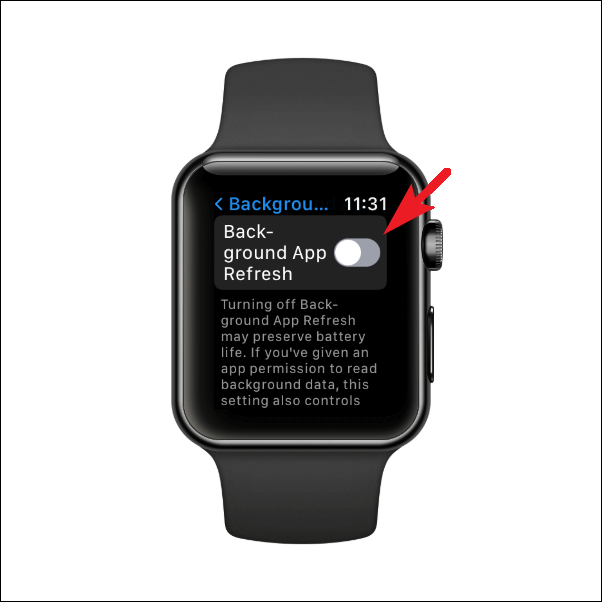 Now, on the ‘Background App Refresh’ screen, in case you wish to turn off the background app refresh for every app on the watch, tap on the toggle switch present on the ‘Background App Refresh’ tile to bring it to the ‘Off’ position. We don’t recommend doing this, though.