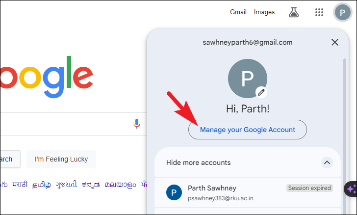 Step 3: From the dropdown menu, select 'Manage your Google Account' to access your account settings.