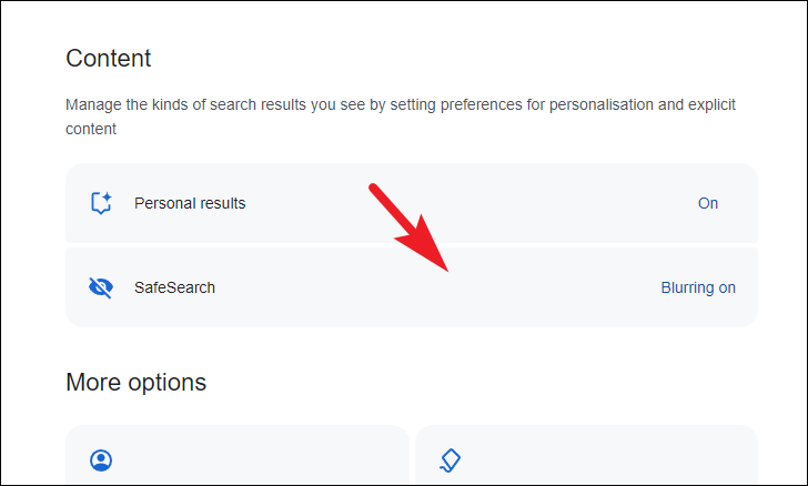 - Blur: Explicit content will appear in search results but will be blurred. This is the default setting for users over 18.