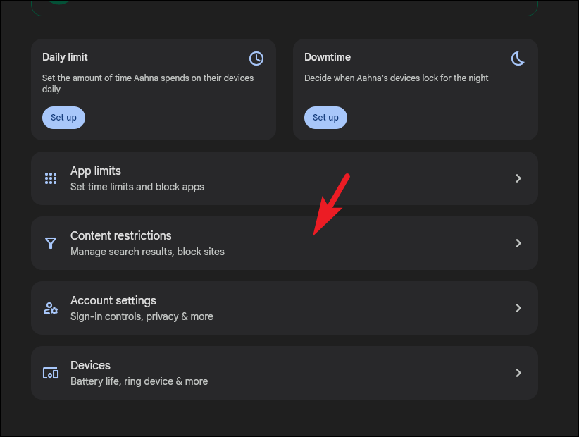 Step 4: In the right section of the screen, click on 'Content restrictions' to proceed.