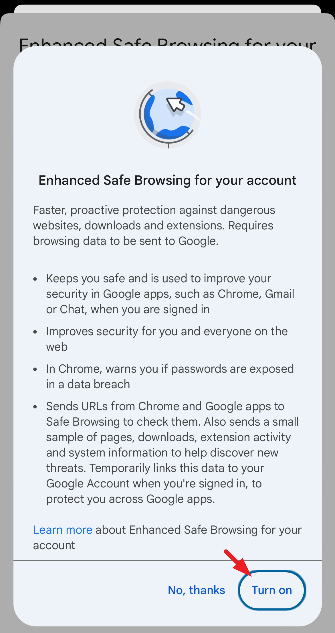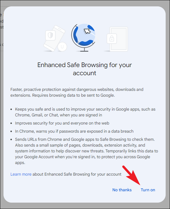 Turning on Enhanced Safe Browsing
