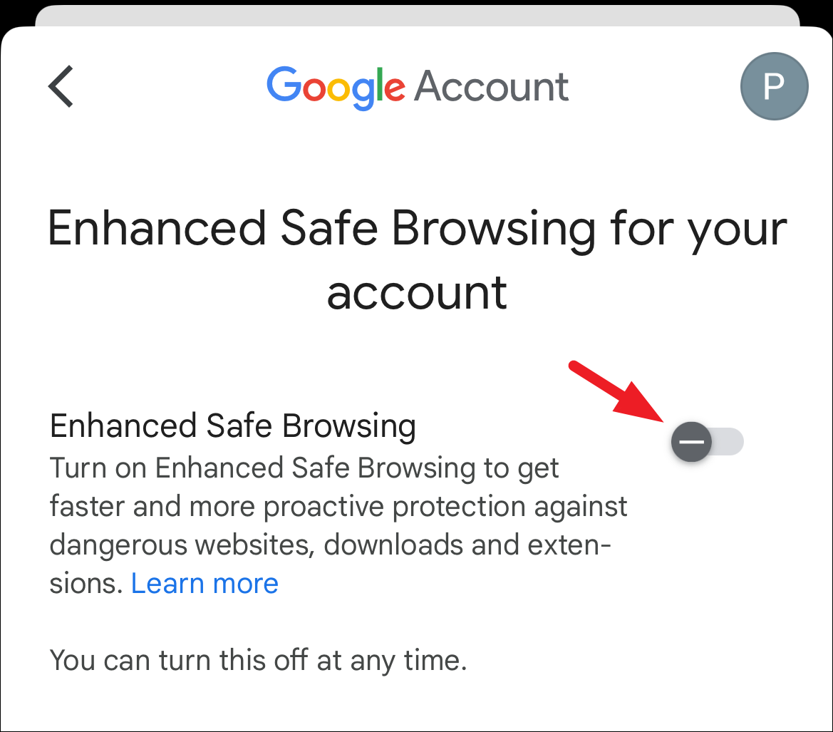 Step 8: On the next screen, toggle on 'Enhanced Safe Browsing'.