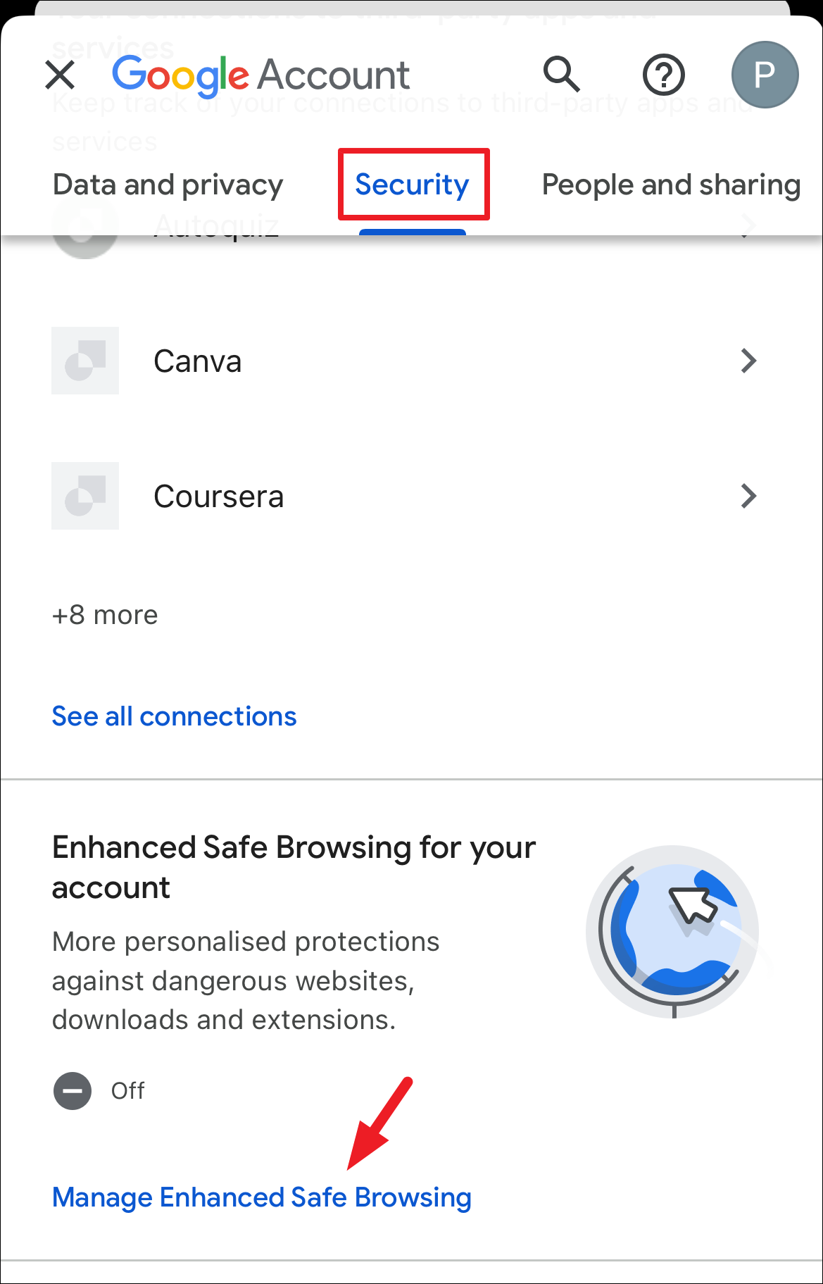 Step 7: Scroll down to 'Enhanced Safe Browsing for your account' and tap on 'Manage Enhanced Safe Browsing'.