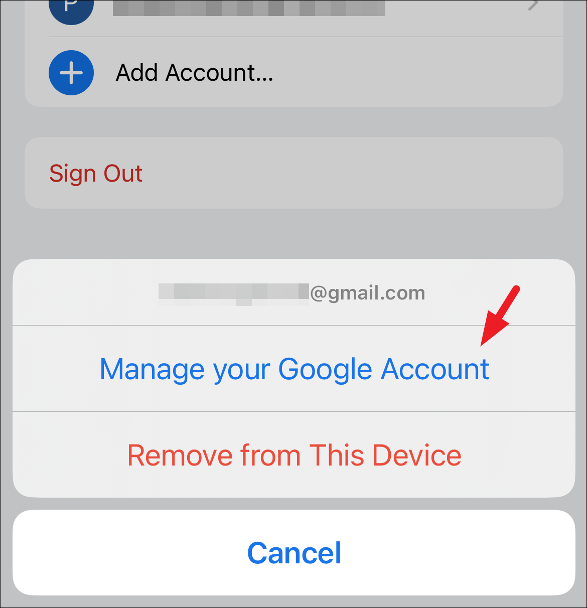 Step 5: Tap 'Manage your Google Account' from the prompt to continue.