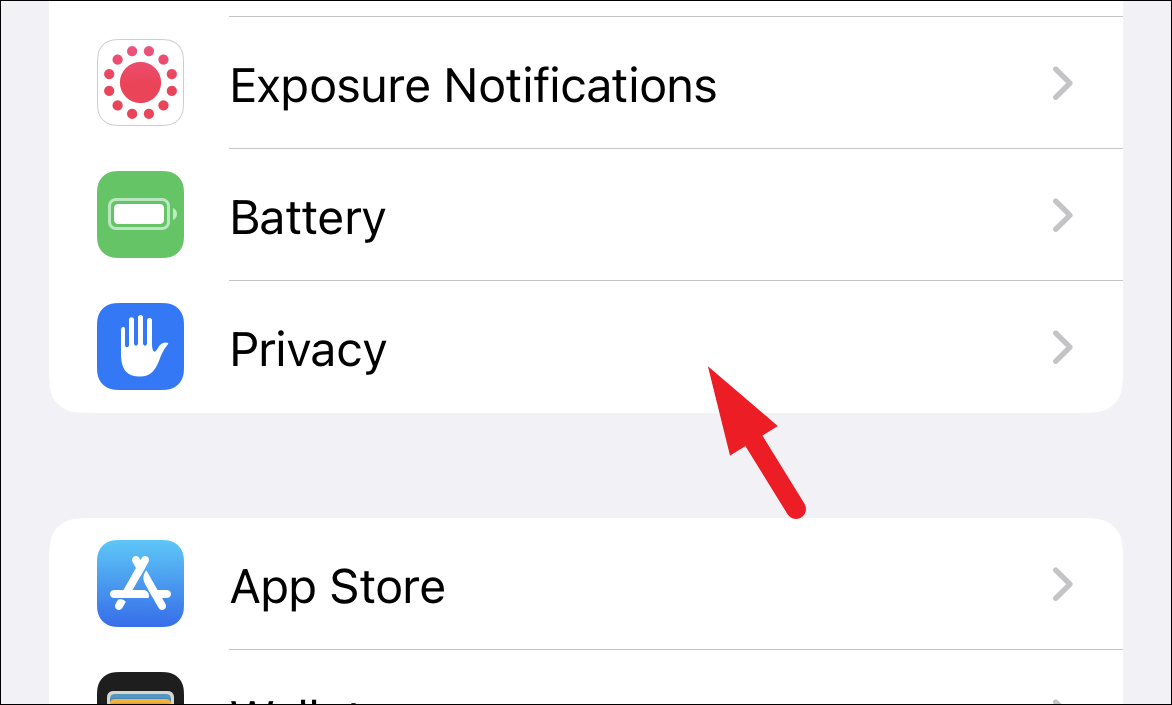 After that, from the ‘Settings’ screen scroll down to locate and tap on the ‘Privacy’ tile to proceed.