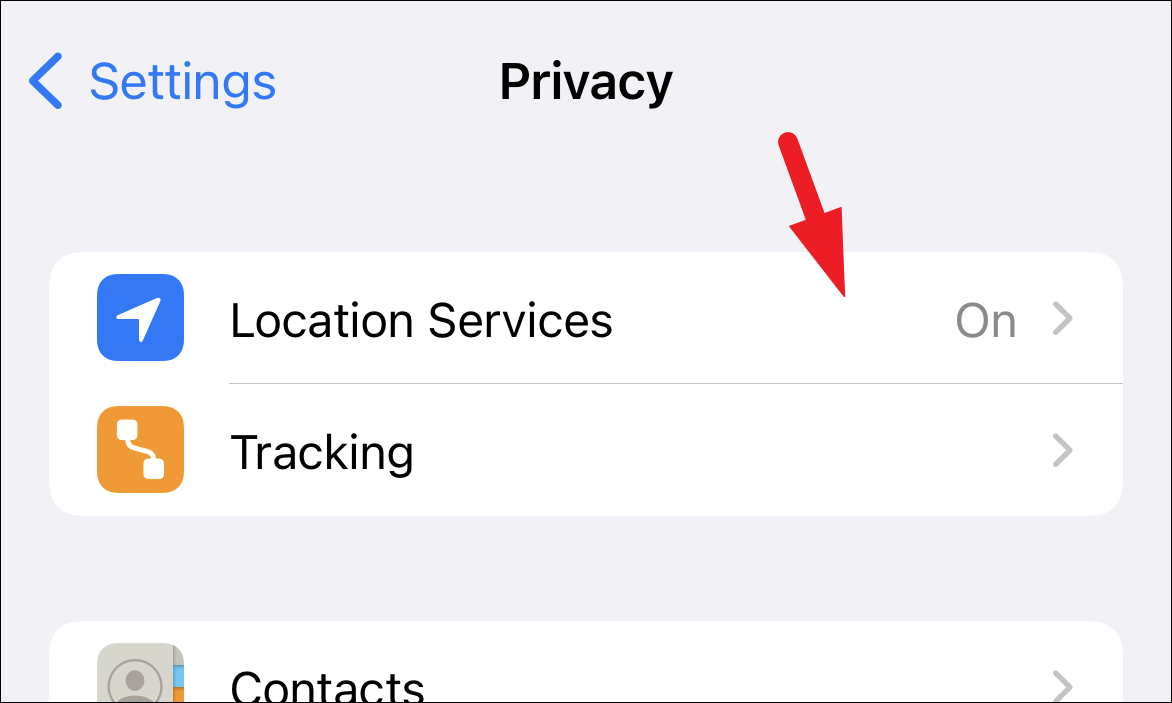 Next, on the ‘Privacy’ screen, tap on the ‘Location Services’ tile to continue.