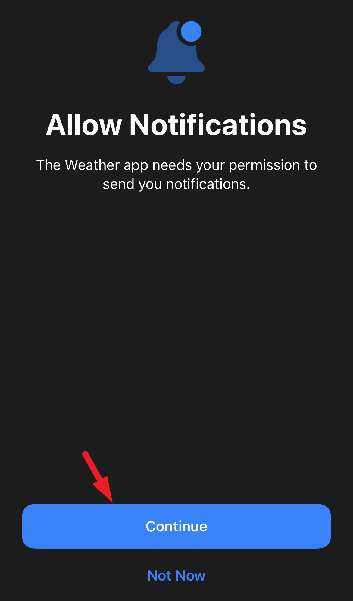 Then, from the alert, tap on the ‘Allow’ button to provide the Weather app the access to send you notifications.