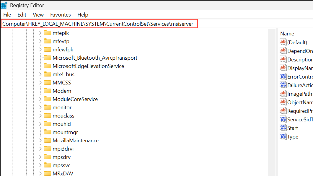 HKEY_LOCAL_MACHINE\SYSTEM\CurrentControlSet\Services\msiserver