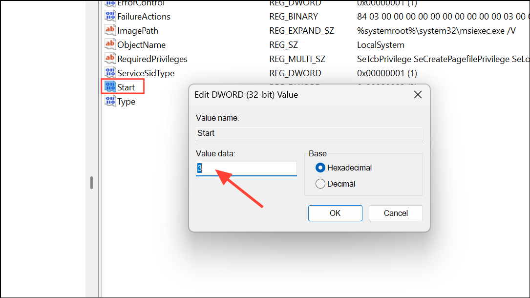 Ensure the Base is set to Hexadecimal, then click OK. Close Registry Editor and restart your PC for changes to take effect.