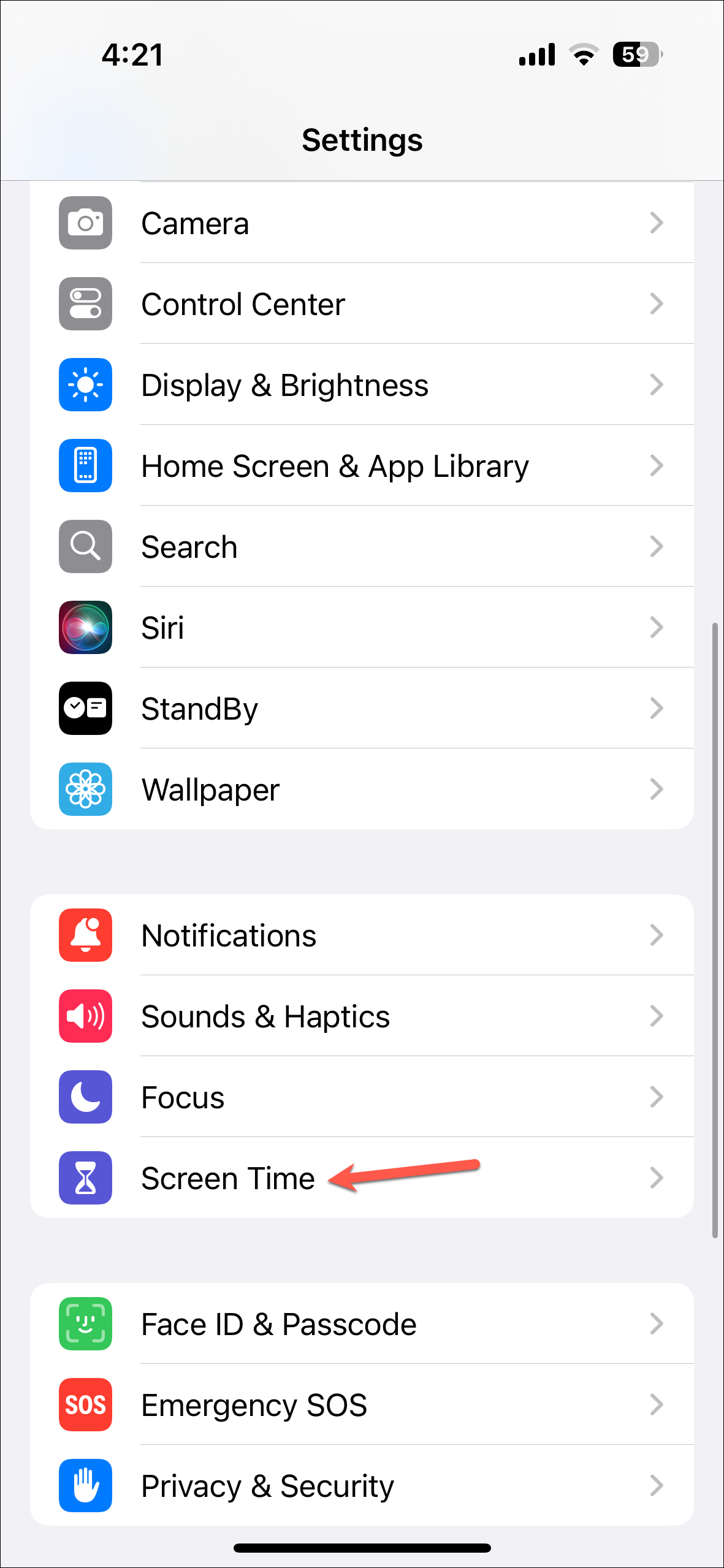 - Open the Settings app and navigate to 'Screen Time'.