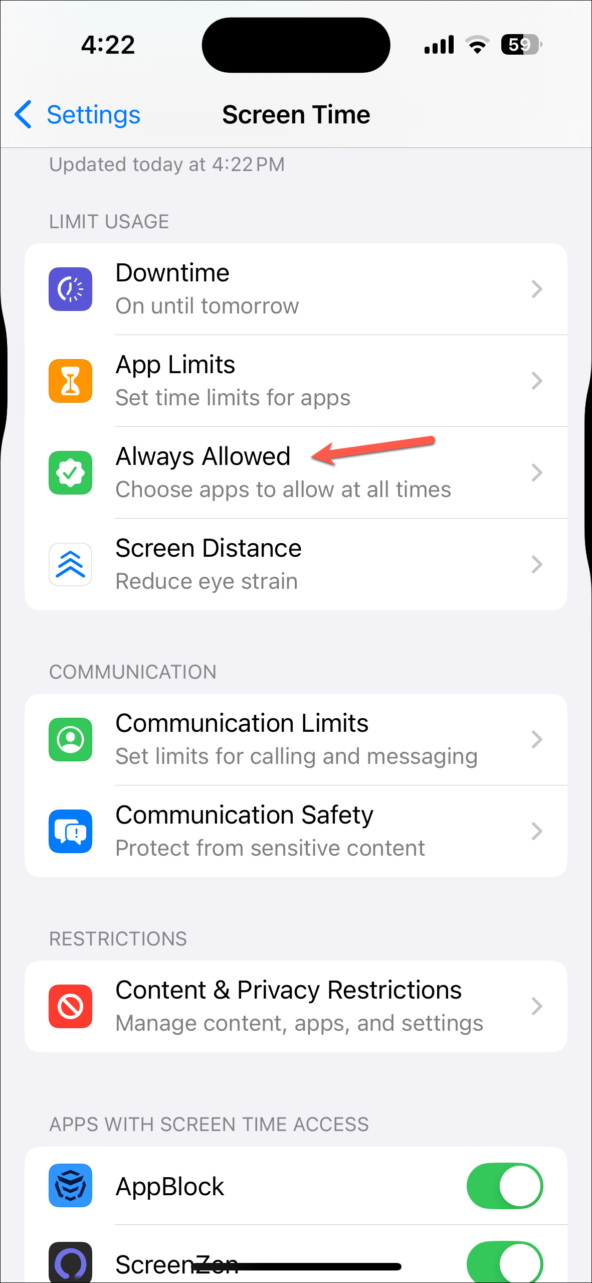 - Then, go to 'Always Allowed' to allow the apps and contacts during Screen Time.