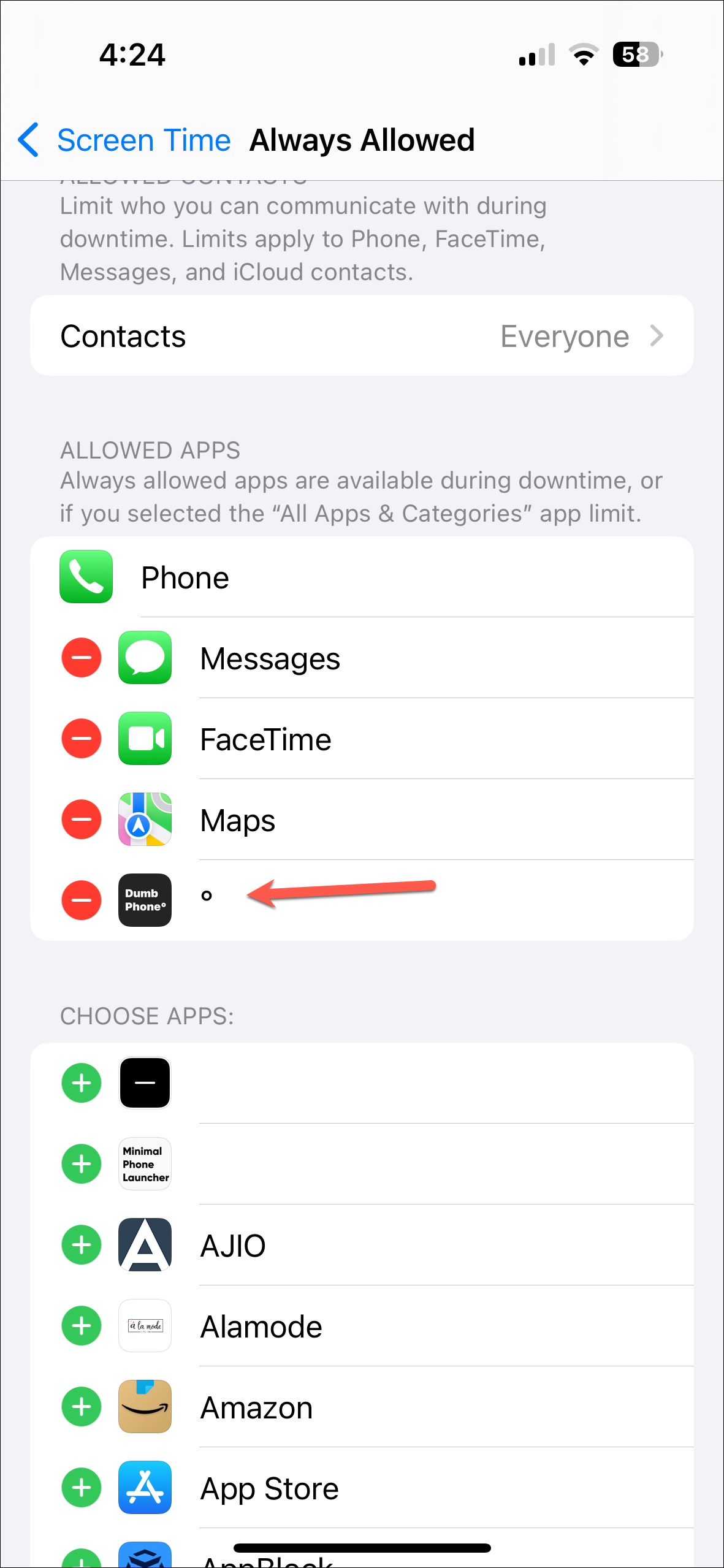 - Choose 'Dumb Phone' in the list of apps you want to allow; otherwise, the widget will stop working.