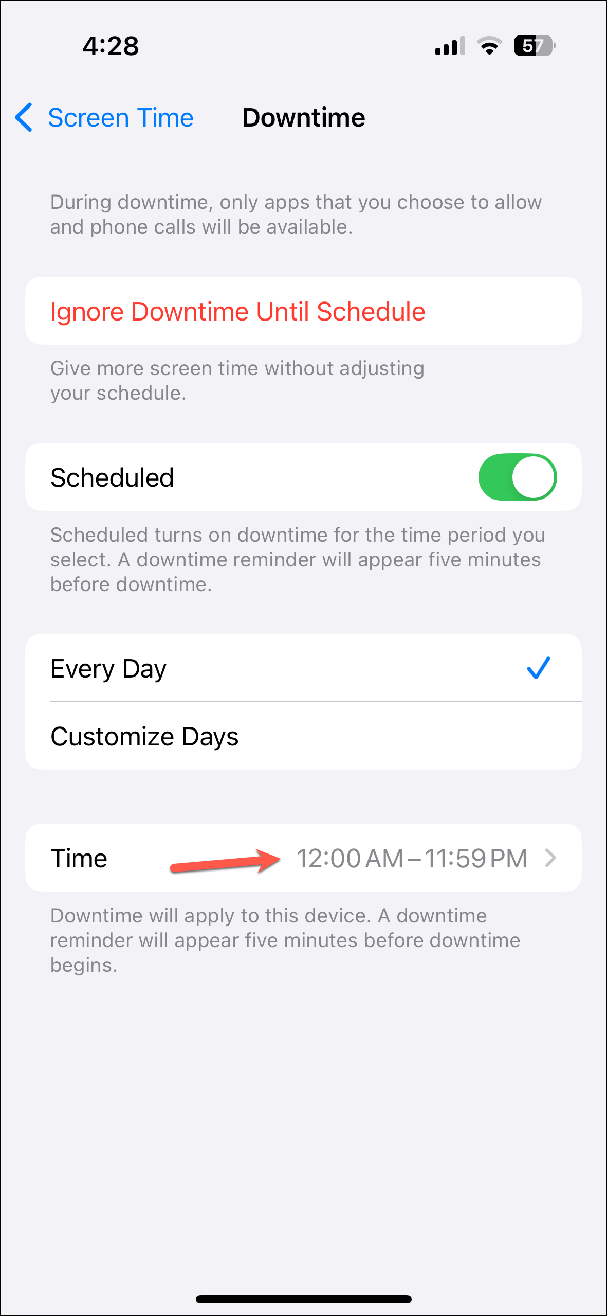 - Here, you can either turn it on or create a schedule for it. Create a schedule to keep it turned on at all times to convert your iPhone into a dumbphone.
