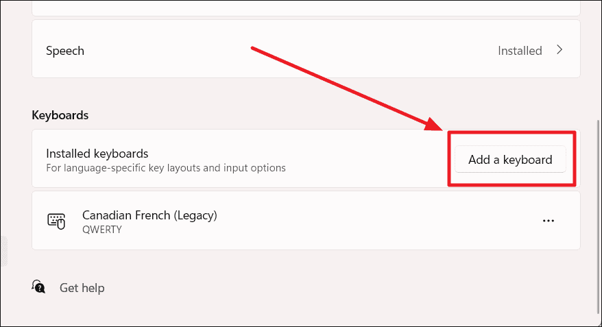 - Scroll down to the Keyboards section and click the Add a keyboard button.