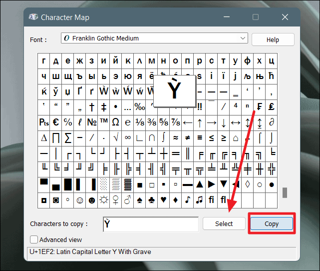 Typing accents with Windows Character Map on Windows 11