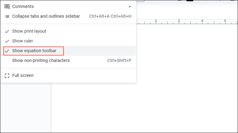 - To hide the Equation toolbar completely, click on the 'View' menu at the top and then uncheck the 'Show equation toolbar' option.