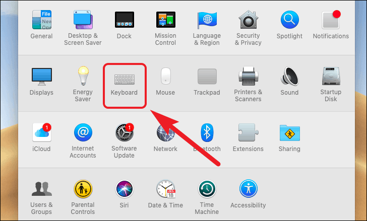 Next, click on the ‘Keyboard’ preferences from the available options.