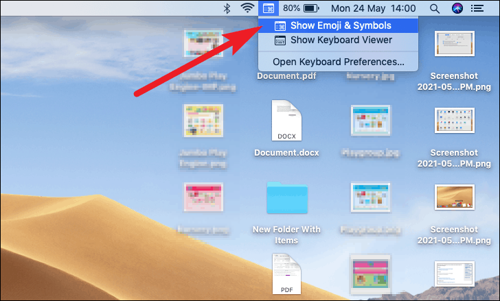 Now, click on the ‘Emoji Viewer’ icon present in the left section of the menu bar and click on the ‘Show Emoji & Symbols’ option