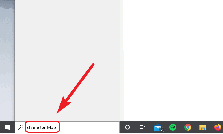 Go to search box present in the Windows taskbar and type ‘Character Map’. The search box will be located at the left bottom corner of your screen.