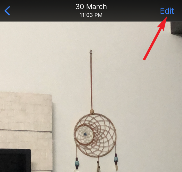 Open the photo from the ‘Photos’ app on your iPhone and tap the ‘Edit’ button.