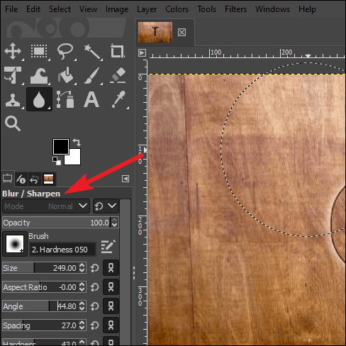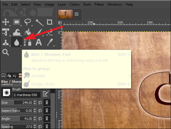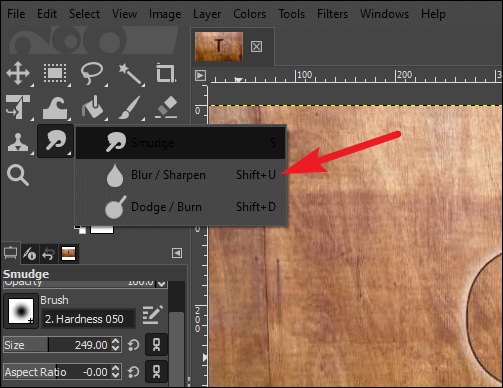 The Blur/ Sharpen tool will activate, and the options for it will appear on the bottom half of the panel on the left.