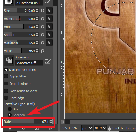 Now, drag your cursor over the image or the parts of the image you want to sharpen. You can increase/ decrease the size of the cursor to sharpen certain parts of the image clearly.