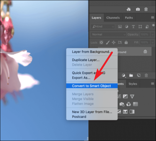 Open the image you want to unblur and go to the panel on the right. Under the option for ‘Layers’, select the layer. Then, go to ‘Filters’ and select ‘Convert to Smart Object’ from the menu. Converting to Layers for Smart Filters allows you to edit and sharpen the image without changing it permanently. This way, if you don’t like the results, you can always go back to the original.