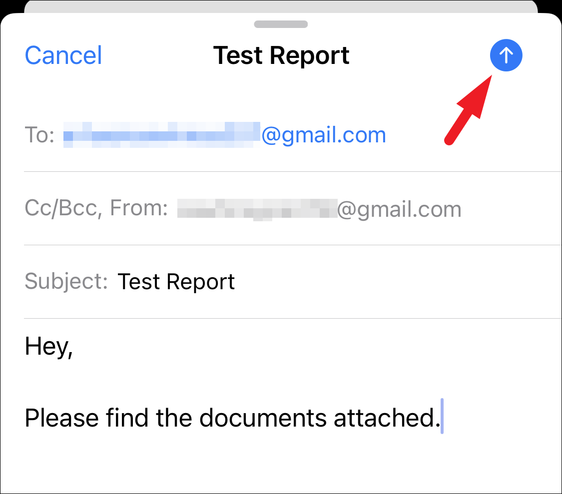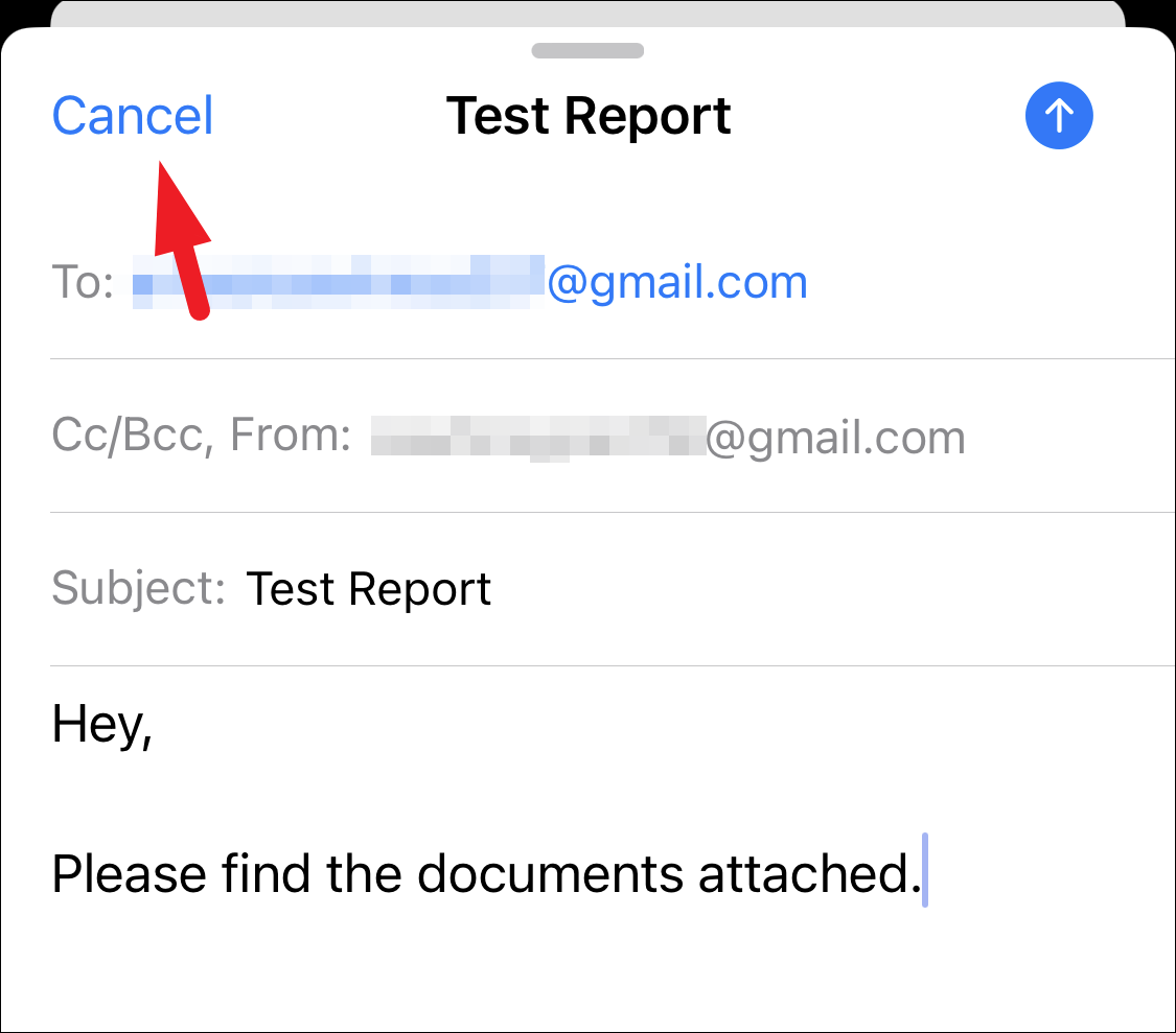 In case you do not wish to send the email, tap on the ‘Cancel’ button in the top-left corner instead.