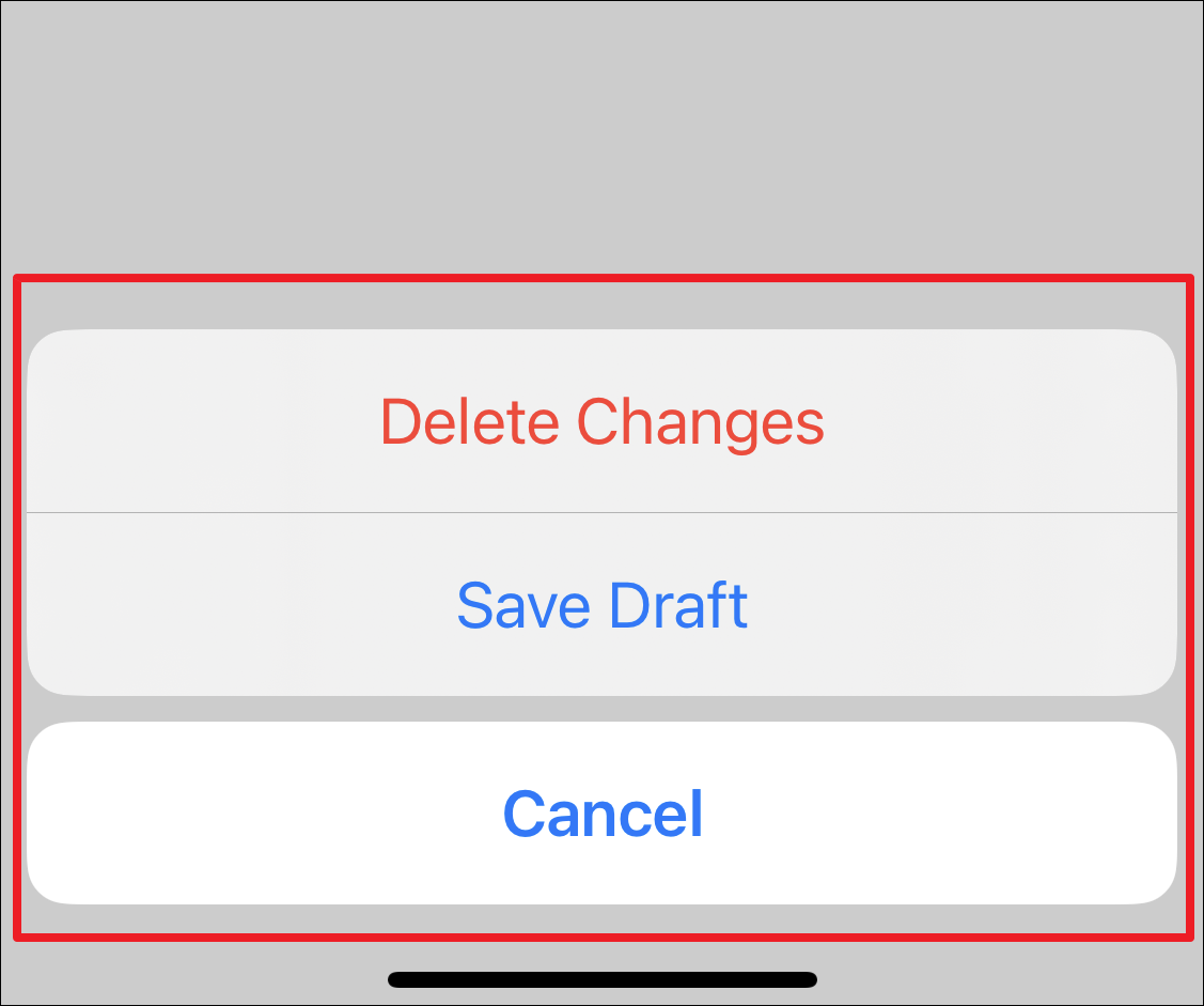 A couple of options will appear at the bottom of the screen. Tap on ‘Save Draft’ if you wish to come back to the mail later to finish it. Otherwise, tap on the ‘Delete Changes’ button to completely discard the mail.
